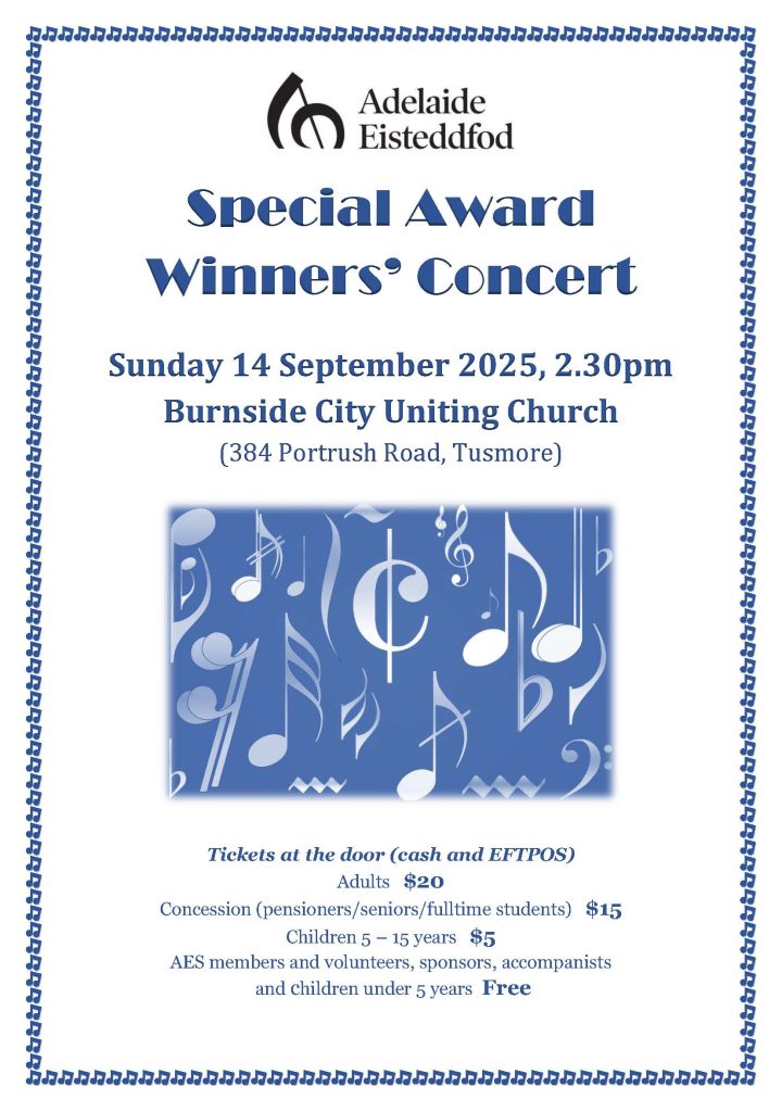 Sunday 14 September: Special Award Winners Concert Burnside Uniting Church